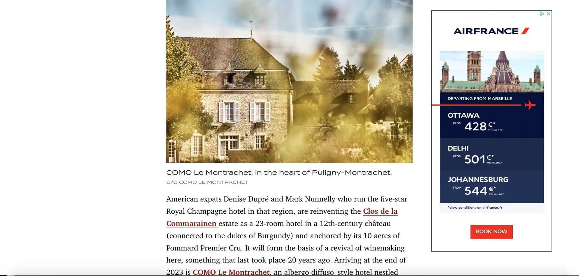 American expats Denise Dupré and Mark Nunnelly who run the five-star Royal Champagne hotel in that region, are reinventing the Clos de la Commarainen estate as a 23-room hotel in a 12th-century château (connected to the dukes of Burgundy) and anchored by its 10 acres of Pommard Premier Cru. It will form the basis of a revival of winemaking here, something that last took place 20 years ago.